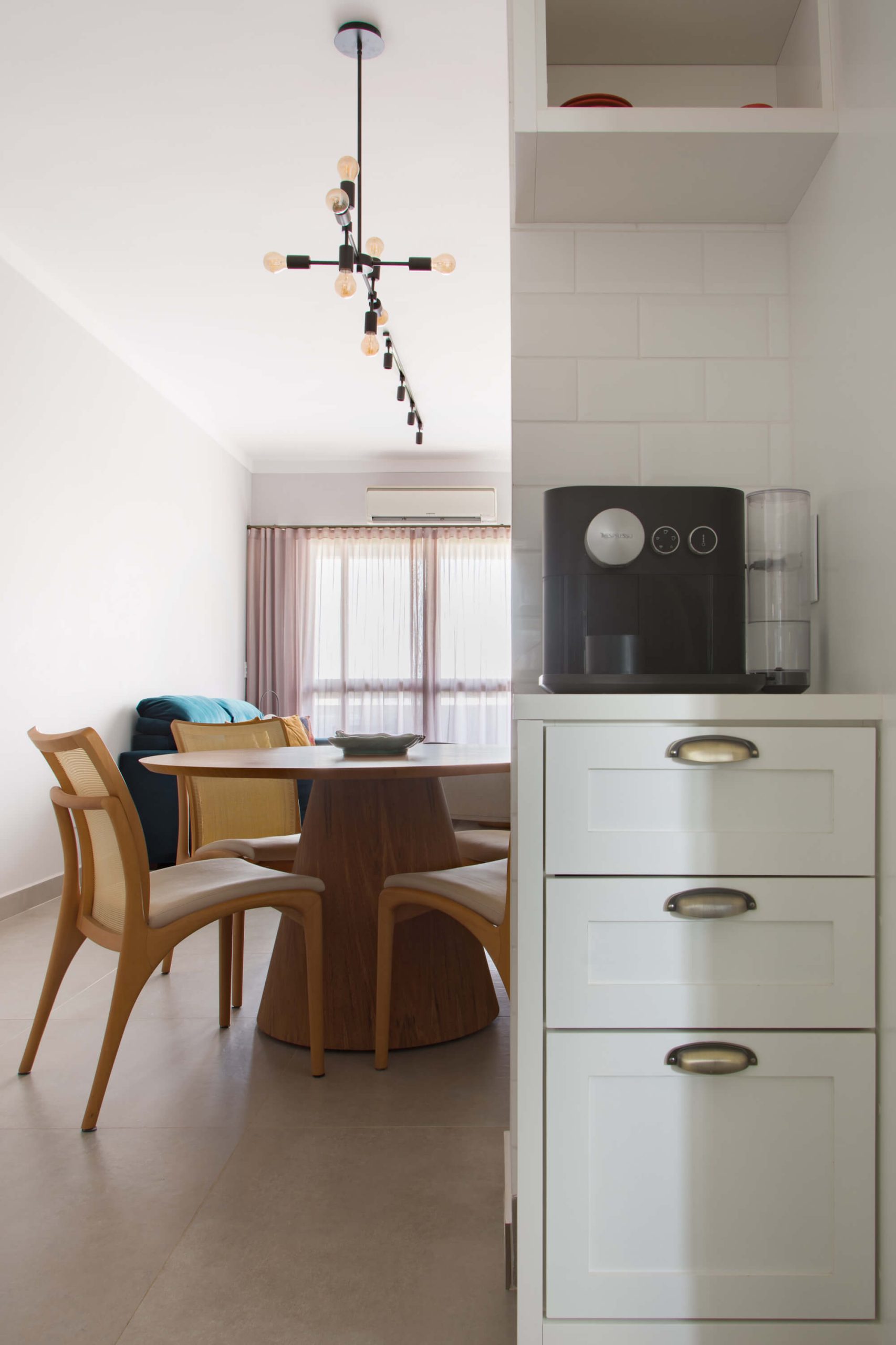 Upon entering the apartment, the sensation is one of inhabiting a cozy and minimalist space. Minimal not due to a lack of elements, but through the modest posture that builds meaning within the proposal. Less is more.