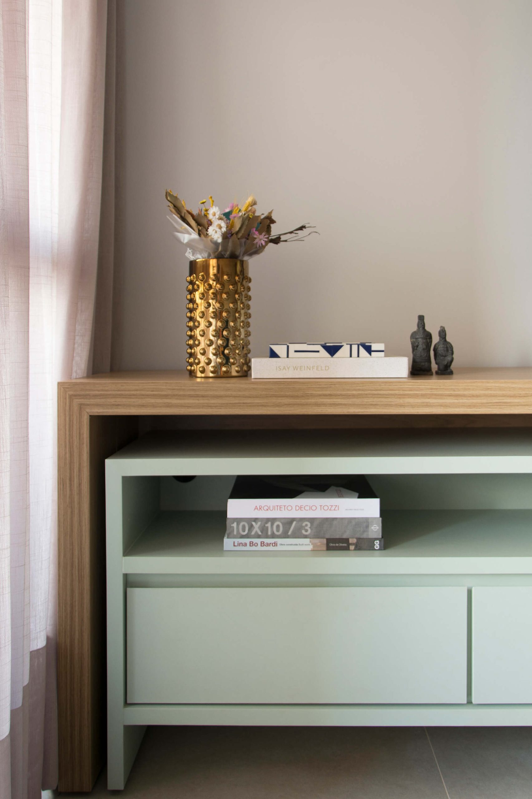 First, to intervene in an apartment building located in downtown Ribeirão Preto, near Luís Camões Square, where important projects from the city’s modernist legacy can be seen from the windows (the Sociedade Recreativa headquarters, the Itália Barillari Building, etc.). In other words, an opportunity to dialogue with the past and the talented work of great professionals.