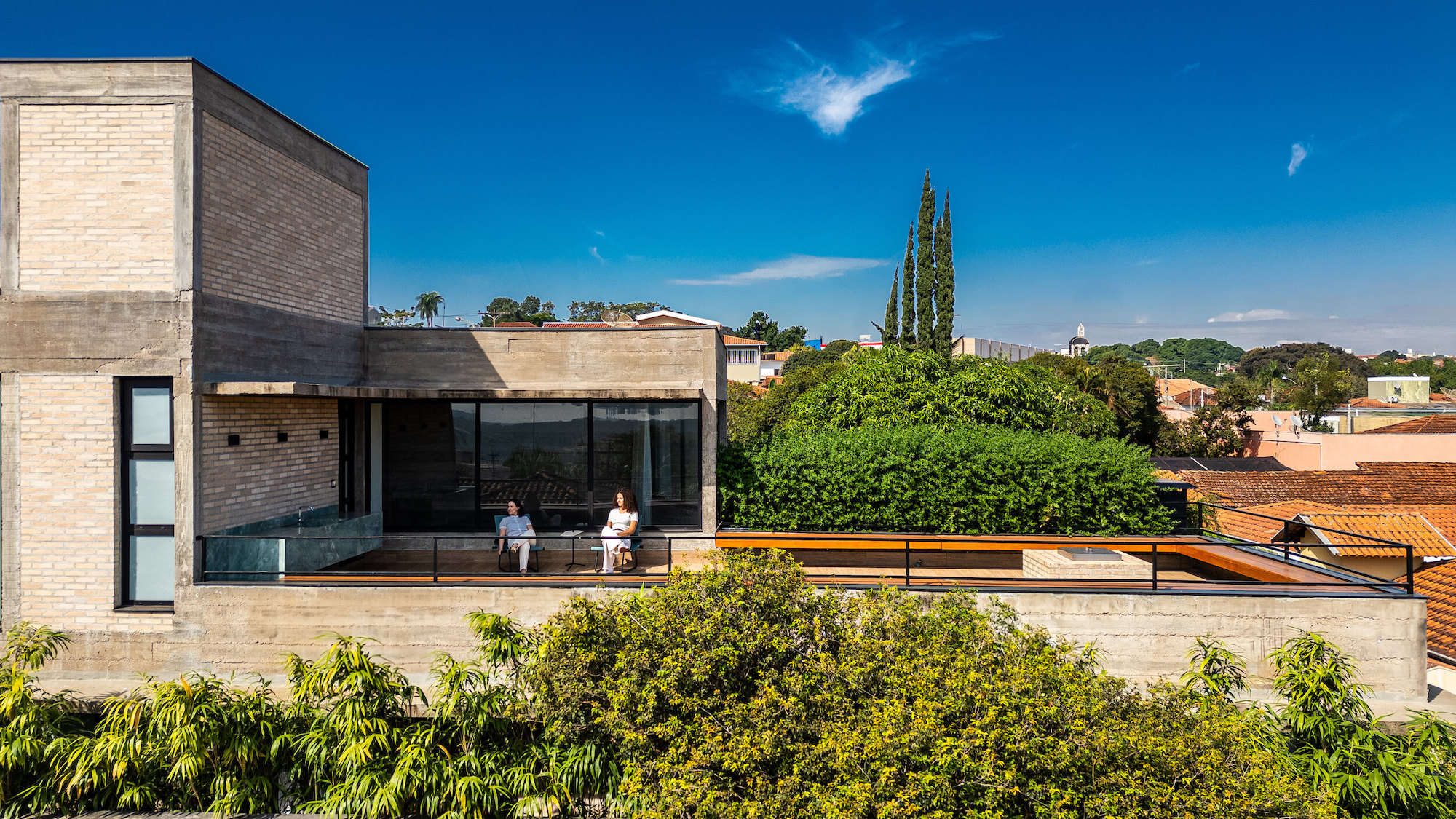 The house have two bedroons on the ground floor, which configures the independence of the floor: the house, despite having two floors, happens mainly on the ground. To avoid underutilized corridor areas, two axes were designed in the longitudinal direction of the house: to the north, the closed areas (washroom, stairs, bedrooms and laundry); to the south, the open spaces integrated with the garden (garage, living rooms and kitchen). On the upper floor, there is a bedroom, facing east, with a floor-to-ceiling window, protected by wooden lattices that run externally. To guarantee a view of a garden from this space, a concrete planter occupies the front recess, above the gates that access the house. The gates, brises, were designed as a filter to allow the view from inside and allow the garden to overcome barriers, nullifying them. To the west, there is access to a terrace, with a view of the city and the interior of the house.